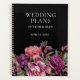 Elegante, romántico morado y rosa floral y verde sobre el planificador botánico de bodas encuadrado en espiral negro. Personalizado con los nombres de la novia y el novio y la fecha de su boda.