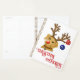 Cute Fox Red Labrador Retriever está vestida con su nariz roja Rudolph de vacaciones, corbatas de renos y collar de campanas de trineo, con decoraciones colgantes de Peace and Joy. Personalizar este diseño con tu saludo de vacaciones preferido. También están disponibles los diseños Black and Yellow Labrador Retreiver y Border Collie.