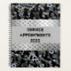 Este fabuloso diseño, generado por computadora, cuenta con tornillos y tuercas y pernos y arandelas de capa sobre capa, lo que lo convierte en una excelente elección para su portero o mecánico favorito. Innumerables tonos grises y plateados descansan sobre un fondo negro en este diseño decididamente "masculino". Para este maravilloso planificador, el diseño ha sido modificado para incluir dos tiras de "revestimiento de diamantes" que enmarcan el área de texto: "Citas de servicio" y "2022" pueden ser modificadas (o ambas) para adaptarse mejor a sus propósitos. La parte posterior del planificador es simple negro, para coordinarse con el fondo del diseño, pero ofrece varias oportunidades de personalización o identificación.