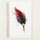 Pluma de fuente antigua de dibujos artísticos adornada con una pluma roja oscura sobre fondo blanco.