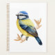 Una hermosa acuarela pintada a mano de una teta azul encaramada elegantemente entre los tallos de trigo dorado. Este diseño delicado y elegante cautiva la serenidad de la naturaleza, ideal para los amantes de las aves, los amantes del campo y los amantes del encanto rústico.