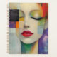 This stunning abstract portrait of a woman blends surrealism with vibrant color block techniques. Her serene expression, closed eyes, and bold red lips are framed by a mix of geometric shapes and painterly textures. A modern, avant-garde design to add a touch of modern elegance.