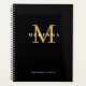 Moda negra sin fecha semanal planificador mensual. Con monograma personalizado con nombre en blanco y dorado.