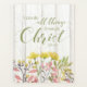 Planificador con conocido versículo de escritura de Phillippians 4:13, "Puedo hacer todas las cosas a través de Cristo" en un estilo moderno, tipográfico con un fondo de madera clara y flores amarillas y rosadas a lo largo del fondo. Diseñado por Simply Scripture; arte floral de Design Cuts.