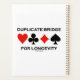 No hay necesidad de tener Alzheimer o demencia para disfrutar de una actitud de puente duplicada con este planificador que presenta los cuatro trajes de cartas, junto con el truismo de puente duplicado que dice "Puente duplicado para longevidad". Puente diciendo planificador para cualquiera que sepa sobre los beneficios de longevidad que viene de jugar doble puente regularmente!