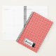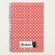 Patrón de puntos polka rojo adorable con etiqueta personalizada de gato negro.