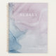 Hermoso y delicado planner abstracto púrpura pastel y azul índigo con tu nombre personalizado y el año en curso en elegante tipografía blanca.