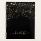 Crea tu propio planificador de destellos de diamante negro y dorado personalizado con tu personalizado moderno nombre de escritura manuscrita.