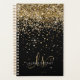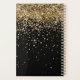 Purpurina Glam Gold Elegant Monogram Planner Fácilmente personaliza este moderno diseño de moda con un elegante purpurina brillante de oro sobre un fondo negro. El diseño incluye su monograma manuscrito con giros de bonito y nombre.