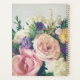 Un ramo de rosas de color melocotón y rosa y de claveles blancos con pequeños toques de violeta claro.