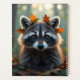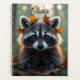 Un adorable mapache sentado en un bosque en el otoño cubierto de otoño deja un planificador personalizado. ¡Mantenga todas sus citas, cumpleaños y notas organizadas con este lindo planificador!