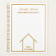 Este moderno planificador inmobiliario 2023 es sencillo y sutil con tu monograma y nombre de compañía. Cuenta con una moda con un minimalista dibujo de oro y línea blanca de una casa. Mantenga todas sus citas organizadas con este bloc de notas para planear.
