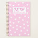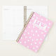 NewParkLane - Planificador personalizado con un patrón de corazones blancos y lindos rosados sobre un fondo rosado caliente, con un marco para su nombre y monograma. Proteja esta colección para ver los elementos coincidentes.