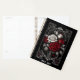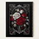 Rosas rojos y grises blancos en un jarrón, sostenidos en un marco gris de hierro forjado sobre un fondo negro, crean un bonito gótico.