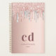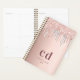 A faux rose gold metallic looking background with elegant rose gold, pink and faux silver glitter drips, paint dripping look. Personalize and add your monogram initials, name and a year (any year)