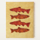Una representación digital de cuatro truchas frente a direcciones opuestas, con un aspecto rústico antiguo, superpuesto a una imagen de fondo de papel antiguo. Hay dos lugares para tu personalizar añadiendo tu propio texto.