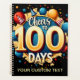 ¡Celebra 100 días de clases con este alegre y festivo diseño! Con globos coloridos, gorras fiestas y un mensaje de celebración, es la manera perfecta de marcar este hito. Personalizarlo con su mensaje.