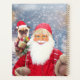 Una santa claus sosteniendo un lindo pug y regalos de navidades. Un regalo perfecto para Navidades para alguien que ama o es dueño de un pug.