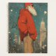 Esta impactante imagen capta un moderno y urbano paseos por un paisaje urbano nevado, irradiando un ambiente fresco y contemporáneo. Vestido con un beanie rojo audaz y una caramba sobredimensionada, acompañado de pantalones caqui casuales y zapatillas blancas, desafía la tradición con un estilo sin esfuerzo. Las suaves nevadas y los árboles desnudos rodean un vibrante horizonte urbano, mezclando el calor festivo de las vacaciones con el frío de un invierno urbano. Es una fusión perfecta entre el encanto de las vacaciones clásicas y el fango callejero.