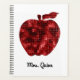 Planificador de Apple Personalizado Teacher Red Faux Sequin. Hermosa y brillante silueta de manzana roja. Personaliza con el nombre del profesor en escritura de bonito. Un regalo divertido para el profesor. www.SamAnnDesigns.com