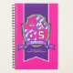 Shelby name significa protector rosa morado planificador. Caballeros de la corona real gallega estilo escudo escudo letra monograma S nombre de arte planificador de espiral perfecto para niños y adolescentes en tonos rosa morado, gris y blanco. Personaliza con tu propio nombre empezando por S y el significado de nombre o un mensaje o sujeto para un toque personalizado, actualmente lee Shelby A willow grove. Alegre, segura y perfecta. Dibujo único de escudo de estilo real, con la cabeza, corona, estrella y monograma S inicial de un unicornio, arte gráfico y diseño de www.mylittleeden.com en zazzle.