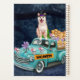 Un lindo perro chiba inu sentado en un camión de Halloween con cráneos es una idea de regalo perfecta para Halloween para alguien que ama a los perros.
