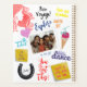 Diseñado para los estudiantes que viajan al extranjero, la parte delantera tiene una hermosa silueta de la cara y el cabello de una mujer que fluye con el aire, todo cuidadosamente diseñado con pequeños corazones rojos. La parte trasera es personalizar y personalizada con su foto familiar y 12 declaraciones cortas para el chica que está viajando, y explorando el mundo. fondo blanco de personalizable