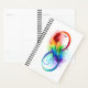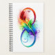Símbolo de infinito dibujado artísticamente con una hermosa pluma arco iris sobre fondo blanco. Estilo tatuaje.