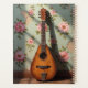 Pretty vintage rose wallpaper with a six-stringed dulcimer leaning up against it. Pretty planner for musicians that like rare instruments.