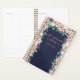 Escaso planificador de citas motivacionales para mujeres. Tipografía de escritura con letras de pincel que dice "Sólo un chica con goles". Rodeado de flores acuáticas sobre un fondo azul marino. Personalice este diseño personalizado con su propio nombre, texto y año.
