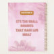Imaginen esto: están teniendo un día difícil, los plazos se están acumulando, y ven a su planificador. ¡BAM! Ahí está en bonito rosado - "Son los pequeños momentos los que hacen la vida grandiosa". De repente, recuerdas esa increíble taza de café que has tenido esta mañana o ese gracioso texto de tu madre. Así como así, tu día se pone un poco más brillante. El diseño rosa suave con flores adorables no es sólo bonito (aunque lo es totalmente). Es como un abrazo cálido para tus ojos cada vez que lo ves. Y seamos reales, todos podríamos usar más de eso, ¿verdad? Agarra uno solo o dáselo a alguien que pueda usar una dosis diaria de positividad.