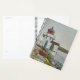Squirrel Point Lighthouse sits on the banks of the Kennebec River in Maine on a dark misty day. The opposite bank near Phippsburg is shrouded in fog. Lichen grows on the bell house roof and the rocks in the foreground. New spring grass springs up around the brush still bare from the long winter. Sargassum laps against the rocky shore showing how close the lighthouse is to the water.