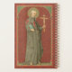 En 1575, St. Camillus de Lellis (1550-1614), un soldado que vivía con dureza en su juventud, tuvo una conversión religiosa. Sin embargo, a causa de una herida incurable en una pierna que había recibido luchando contra los turcos, se le negó la entrada a la Orden de Capuchin tres veces. Después de haber entrado en un hospital para incurables en Roma, se convirtió en un cuidador amable de los enfermos y los moribundos. Finalmente fue ascendido a administrador del hospital, se convirtió en sacerdote y fundó la Orden que hoy lleva su nombre, los Camillianos. Aquí, sostiene el crucifijo que tomó por todas partes con él en la mano izquierda y un libro, presumiblemente la Regla de su Congregación, a su derecha; y, usa el ‘uniforme’ de la Orden —una sotana negra y una capa con una gran cruz roja respectivamente en el pecho y en el hombro derecho. St. Camillus es el santo patrocinador de enfermeras, hospitales y enfermos. + Festín: 18 de julio (en Estados Unidos); 14 de julio en otros lugares + Crédito de la imagen (SAU 37): Huella de oro NeoGótica antigua con borde floral de St. Camillus de Lellis, publicada originalmente en cromolitografía por la Socièté de St. Augustin, Brujas, Bélgica, a finales del siglo XIX, de la colección privada de creadores de hemoglobina era.