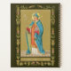 En este retrato de largo alcance de una huella devocional de finales del siglo XIX, St. Thomas Becket se describe como fiel a su tipo más antiguo: se lo representa en su primo: alto, delgado y afeitado. Lleva su cruz archiepiscopal en la mano derecha y lleva a la izquierda un libro de lectura o de Evangelio. Está vestido con una capa casi completa de canónidos, es decir, lleva un dalmásico rojo sobre una túnica blanca adosada con guantes rojos-violetas y una capa azul brillante. Presumiblemente, también está usando sandalias episcopales (zapatos bajos que se parecen a zapatillas o lofistas modernos) que se asemejan a las toallas que le dan debajo de las togas rojas (medias ceremoniales de seda). Sólo le falta la cruz y el anillo pectorales necesarios. (La omisión de un anillo es una omisión artística común) Un lienzo azul brillante con revestimientos amarillo-verde completa el conjunto. Y, entonces, está la espada inusualmente colocada que perfora su cabeza empañada de un lado a otro... + A lo largo de gran parte de la historia, la espada ha sido la principal arma defensiva y ofensiva. Muchos santos (hombres y mujeres) tienen las espadas como atributos. En un estudio iconográfico de dos volúmenes de unos 1000 santos, ¡una espada se asocia con más del 15% o 150 de ellos! La espada es un atributo tan prevalente que su presencia por sí sola suele ser insuficiente para determinar la identidad de un santo determinado. + El contexto ayuda. Algunos santos, como los santos reales, llevan una espada como símbolo de poder secular. Otros santos, soldados santos, blanden espadas como símbolo de su profesión. En raras ocasiones, algunos santos incluso llevan dos o tres espadas con diferente significado. Pero, sobre todo, los santos con espadas son mártires rojos, es decir, santos que murieron por la Fe. + Más comúnmente, la espada significa muerte por decapitación. En el arte narrativo, la ejecución misma puede ser retratada. En composiciones de una sola figura, el Santo normalmente sostiene una cuchilla sin aplanar en su lado hacia abajo o hacia arriba. La colocación de la espada depende de si la figura en cuestión es de largo y largo o de media longitud, como en la cabeza. En las entregas más gráficas, la espada se puede depositar en la cabeza medialmente, en la parte posterior del cuello, atravesar la garganta o perforar el corazón u otra de las partes del cuerpo. + El martirio de St. Thomas Becket por cuatro asesinos armados con espadas comenzó a ser retratado poco después de su muerte (ver M 030). El entorno interior de un altar, el número de asesinos con sus respectivos cojinetes heráldicos y la presencia de su travesura son suficientes para diferenciar el martirio de Becket del de la mayoría de los otros santos. Las raras representaciones de su delimitación dejan poco margen para la duda de quién está siendo retratado. Sin embargo, menos distintivos fueron los primeros "retratos" de Becket. De poco interés iconográficamente, esas representaciones lo retratan rutinariamente simplemente como arzobispo sin otros emblemas, y la identificación se hace a través de inscripciones acompañantes. Gradualmente, los retratos de Becket recibieron una espada (ver M 033) y heridas en la cabeza (K 34). El mismo estudio mencionado en el primer párrafo enumera unos 35 santos que fueron obispos o arzobispos asociados a una espada. Sin embargo, sólo uno de ellos —con la posible excepción del poco conocido San Teodoro de Maastricht— aparece mezclado con una espada que atraviesa su cabeza de un lado a otro: Santo Tomás Becket. De lejos se trata de la forma más popular de representar al Santo hoy. + Santo Tomás Becket es patrocinador de un clero secular. + Fiesta: 29 de diciembre + Crédito de la imagen (P 005): Imagen antigua de St. Thomas Becket de una impresión devocional de finales del siglo XIX en cromoxilografía, publicada originalmente por Friedrich Pustet, Regensburg, Nueva York y Cincinnati. De la colección privada del diseñador de la ephemera religiosa.