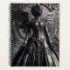 This detailed steampunk fantasy artwork of the fashion for a darkness demon with lace-like wings in shades of black and gray on this artwork planner.