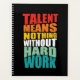 A bold and inspiring motivational typography design featuring the powerful phrase “Talent Means Nothing Without Hard Work.” Styled with a retro vintage aesthetic, the artwork uses distressed textures and vibrant gradient colors transitioning from red to teal, creating a strong visual impact against a dark background. Perfect for print-on-demand products such as t-shirts, hoodies, posters, and wall art, this design appeals to entrepreneurs, athletes, students, and anyone driven by discipline, hustle, and success mindset.