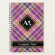 Tartán rosa, amarillo dorado y azul. Patrón sin foco. texto personalizado y monograma.