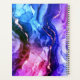 Un diseño de moda de tinta líquida azul, púrpura y roja-violeta con Monograma y Año amarillo personalizado en círculo azul oscuro y dorado.