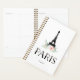 Este bonito planificador cuenta con la Torre Eiffel decorada con acuarelas que lucen flores rosas y blancas con muchas hojas verdes, y la palabra "París" en un elegante texto moderno.