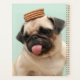 Sacar al perro con la lengua y galletas en la cabeza, fondo verde.