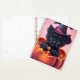 Un gatito negro adorable vestido con un gorra de brujas, sentado dentro de una brillante linterna de jack-o’ llena de coloridos caramelos. Diseño luminoso y kawaii de Halloween con brillantes y colores vibrantes. Perfecto para pegatinas, tazas, camisetas y tarjetas de felicitación.