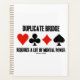 Muestra tu irónico doble sentido del humor del puente con este planificador que presenta los cuatro palos de cartas junto con el dicho "Duplicar puente requiere mucho poder mental".