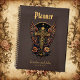 Un símbolo de fuerza: La cruz ornamentada con alas. Un ilustracion detallado representa una cruz dorada con intrincadas esculturas, rodeada por un par de alas. Las alas son un rico naranja y marrón, con un fondo oscuro que recuerda a un cielo estrellado. La cruz se coloca contra un marco circular, con una sola estrella en la parte superior y una estrella más pequeña en la parte inferior.
