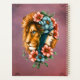 Una mujer maravillosa cuyo cabello largo y fluido brilla en un azul profundo, que recuerda a la vastedad del océano. Su rostro, que muestra rasgos suaves y expresivos, está parcialmente oculto por la majestuosa cabeza de un león. El mané del león brilla en un naranja brillante, lo que crea un poderoso contraste con las delicadas características de la mujer, simbolizando fuerza y gracia al mismo tiempo. El diseño desprende una atmósfera mágica que capta la fuerza y la delicadeza de la mujer representada.