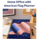 A bold spiral notebook featuring a wavy American flag with festive red, white, and blue confetti. Perfect for school, journaling, or patriotic gifts.