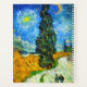 Planner que presenta la ruta de pintura al óleo de Vincent van Gogh con Cypress y Star (1890), también conocida como Country Road en Provence por la noche. La gente camina por un camino que pasa por un hermoso ciprés bajo un cielo azul nocturno con luna amarilla y estrellas. Un regalo fantástico para los aficionados al post-impresionismo y al arte holandés.