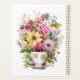 Un buen regalo para alguien que ama las flores y una taza de café o té. Dentro de la taza que cubre este planificador se pueden ver muchas flores diferentes en rosa, azul y amarillo.