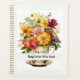 Un buen regalo para alguien que ama las flores y una taza de café o té. Dentro de la taza que cubre este planificador se pueden ver muchas flores diferentes en amarillo, rosa y rojo.