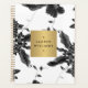 Un patrón floral vintage se hace moderno cuando se combina con una falsa caja metálica de oro que contiene su nombre o nombre de negocio en este elegante diseño de la libreta de citas. El arte blanco y negro es clásico e intemporal, lo que le da a tu marca una estética glamurosa. Ideal para salones de belleza, peluqueros, spas, planificadores de bodas, organizadores de eventos, profesores y más. Diseño para 1201AM Design Studio | www.1201am.com