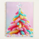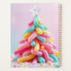 "This enchanting 3D graphic features a festive Christmas tree creatively constructed from colorful, rounded gummy or candy pieces in a vibrant pastel palette (pink, blue, yellow). The design is dusted with white 'snow' or sprinkles and topped with a delicate star. The soft, blurred background enhances the dreamy, sweet aesthetic. This design is perfect for children's holiday accessories and clothing, candy shop branding or promotions, cupcake toppers or candy wrappers, fun and whimsical greeting cards, or any product intended to be appealing, colorful, and have a sugary, festive feel."